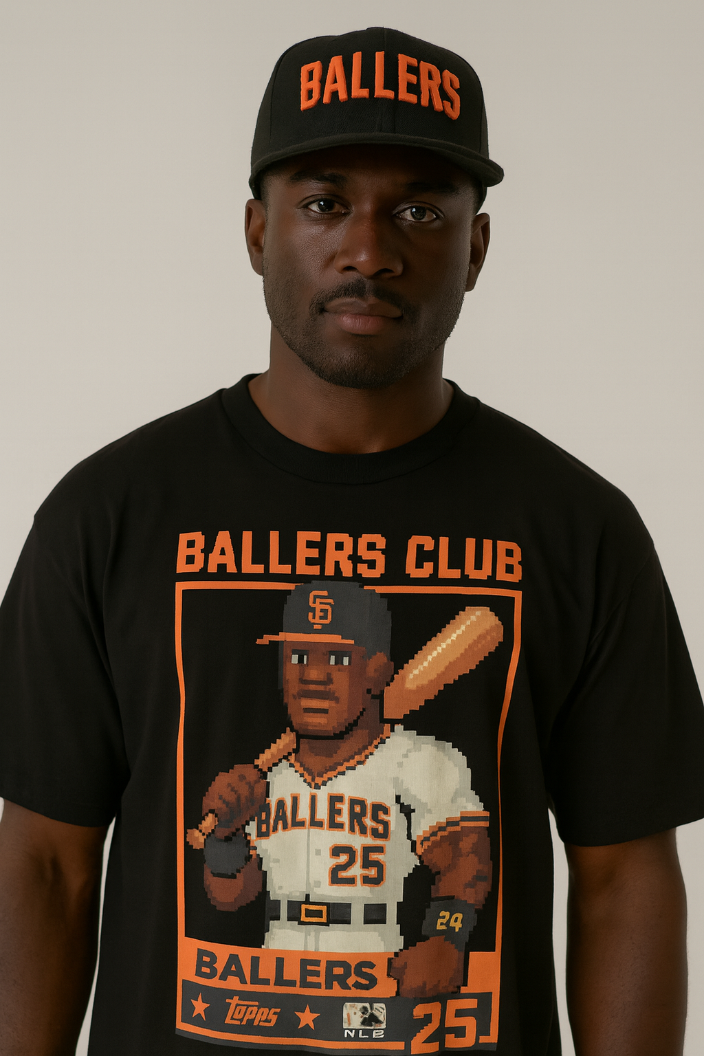 Designed in a vintage 8-bit card style, this collectible-inspired graphic fuses nostalgia with modern streetwear energy. The design honors Bonds’ iconic #25 legacy and his impact on the game that transcended generations.
